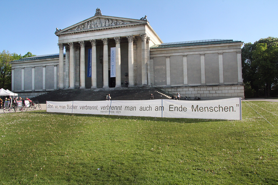 laden wir unter dem Motto „München liest – aus verbrannten Büchern“ ein, am 10. Mai auf dem Königsplatz 5 Minuten aus einem der „verbrannten Bücher“ vorzulesen – dort wo diese